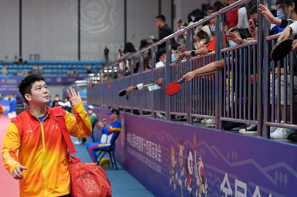 9月20日,广东队选手樊振东在赛后向球迷致意。