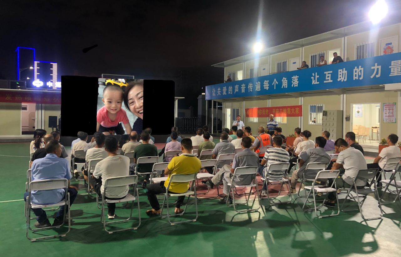 活动现场,众工友团聚一堂,伴着皎洁月光,写下心愿,挂在许愿树稍,为家人祈愿幸福安康。在放映爱国影片《建党大业》时,大屏幕上突现惊喜视频,工友家人将浓浓的思念诉说在视频里,大家一同享受着“云团圆”的温馨时刻。