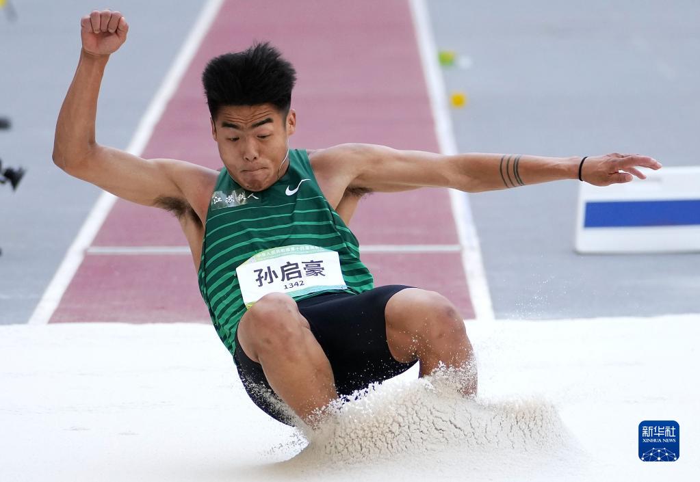 江苏队选手孙启豪在跳远比赛中(9月20日摄)。