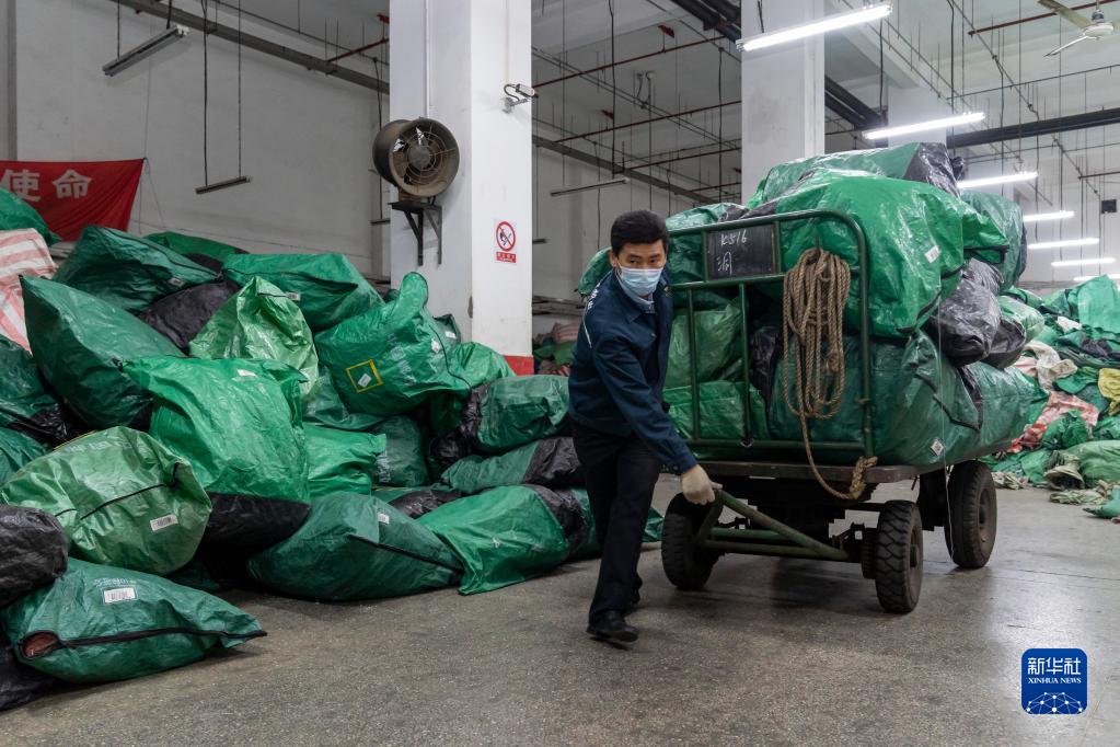 柴闪闪领出邮件(2021年2月27日摄)。新华社记者 王翔 摄