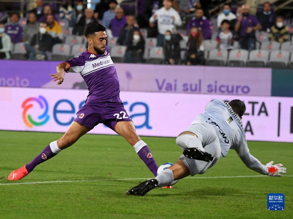 9月21日,佛罗伦萨队球员尼古拉斯·冈萨雷斯(左)在比赛中进攻。