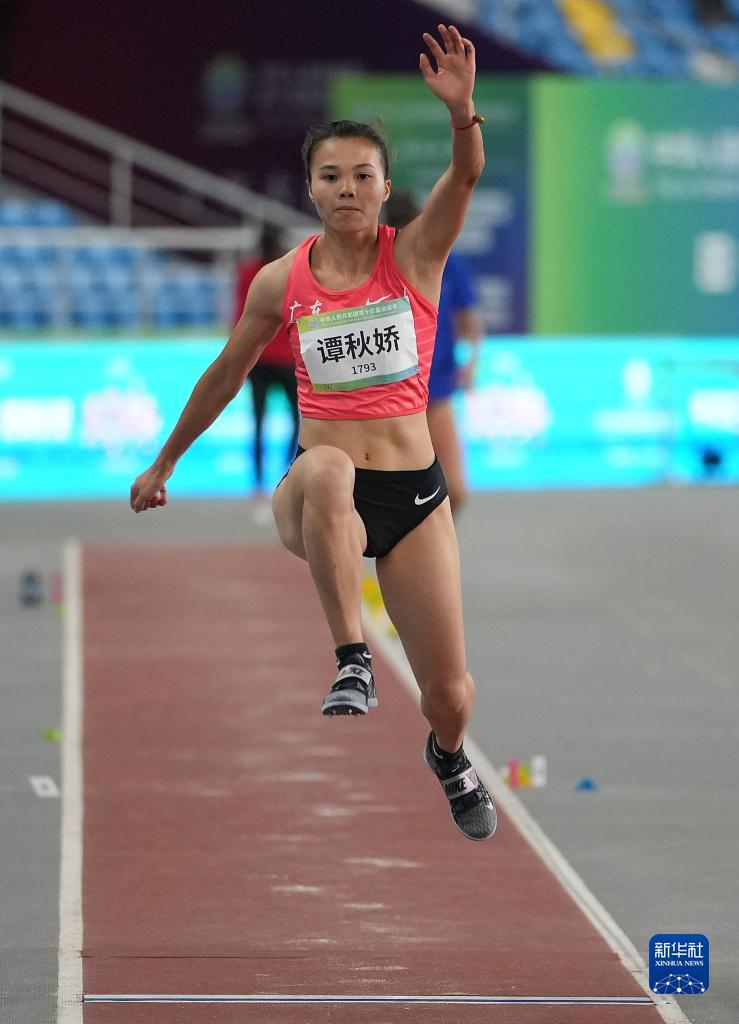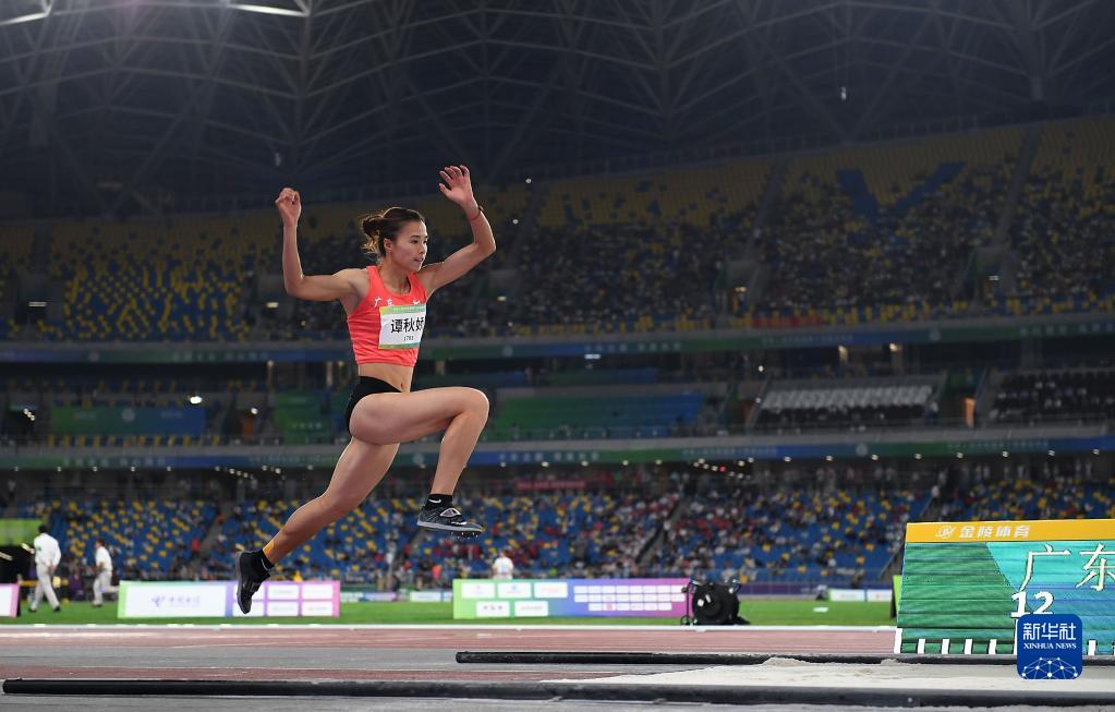 全运会-田径女子三级跳远决赛:广东队选手谭秋娇获得冠军