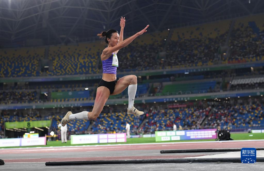 当日,第十四届全运会田径项目女子三级跳远决赛在西安奥体中心举行。