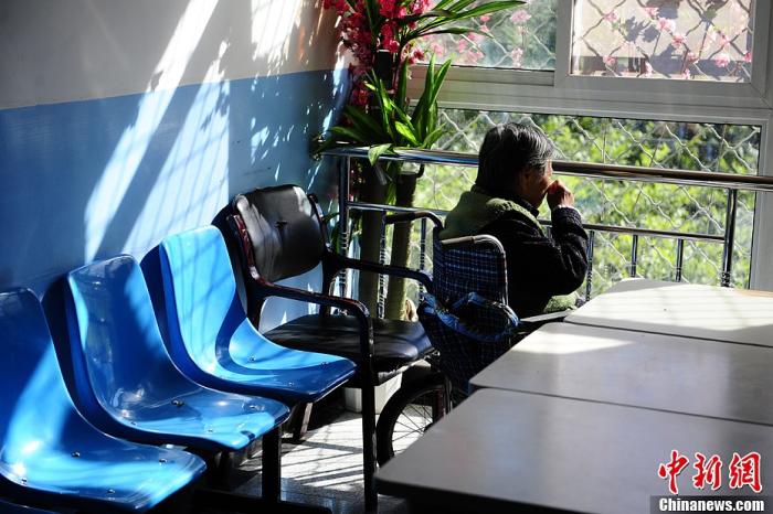 资料图:在北京市郊区一家专业收治阿尔茨海默病的专科医院,一位患有该病症的老人正在轮椅上晒太阳。中新社发 崔楠 摄
