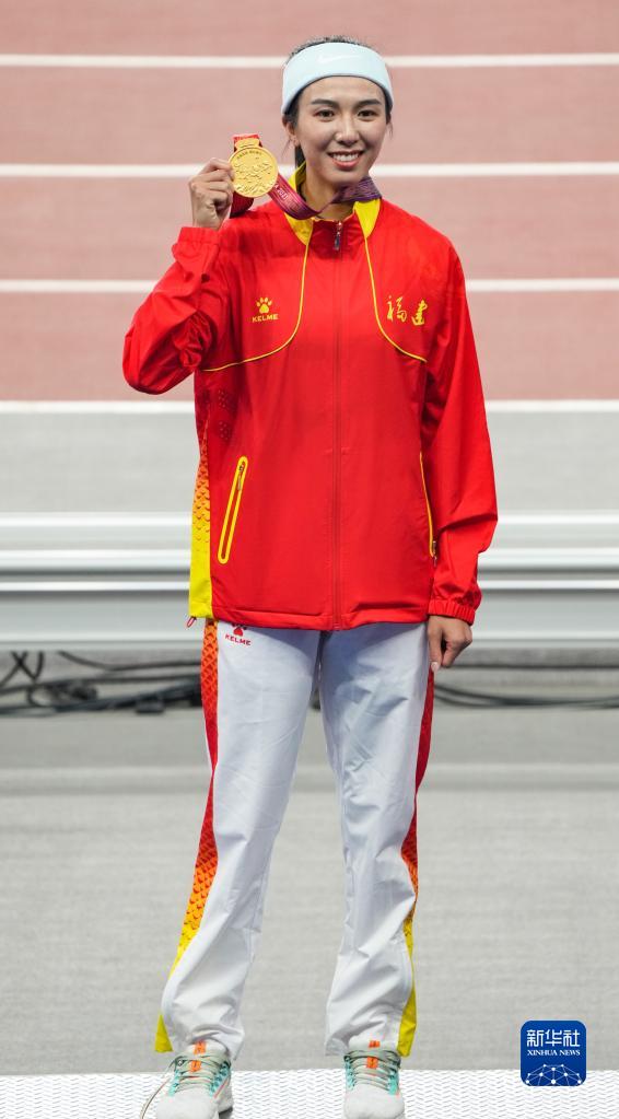 9月22日,冠军福建队选手林雨薇在颁奖仪式上。