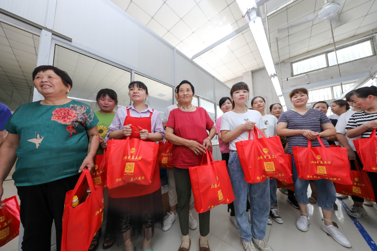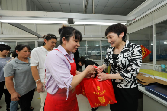 王立华一行还走进树西村淮安金秀时装有限公司,向企业负责人了解企业生产情况,与农民工促膝谈心,详细了解农民工的工作、生活和家庭情况,并代表市总工会向30多位农民工送上食用油、酱油等慰问品和暖心的节日祝福。