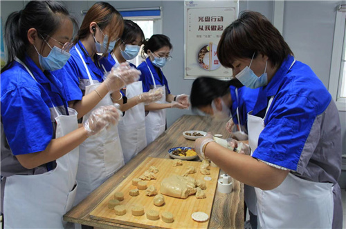 今年中秋节,建设者们选择坚守一线,他们负责施工的普济河道路工程正在进行U型槽桩基施工。为了解大家的思乡之情,项目组织了“巧手月饼 浓意中秋”活动,得到了一线班组员工的热情响应。(曹欣欣)