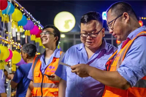 2021年新入职员工胡一鸣说:“这是我工作后的第一个中秋,虽然不能回家与家人团聚,但项目上组织了中秋聚餐,喝彩声、碰杯声、欢笑声不绝于耳,原本还有一丝想家的情绪也在这些声音中消散。”(工人日报-中工网记者蒋菡 通讯员朱文秀)