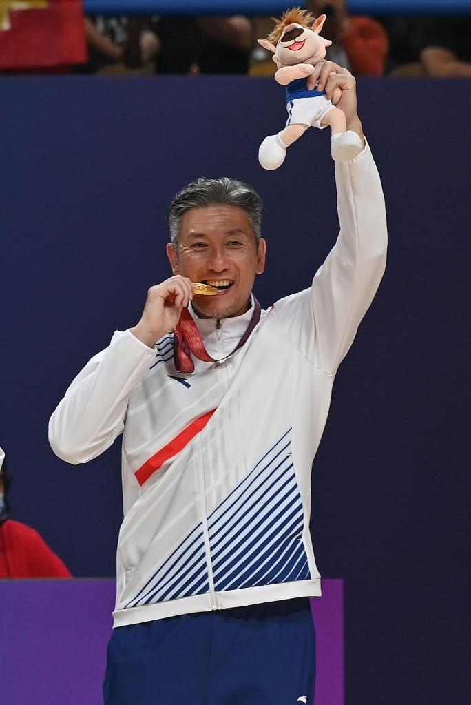 9月23日,广东队教练郑永刚在颁奖仪式上。