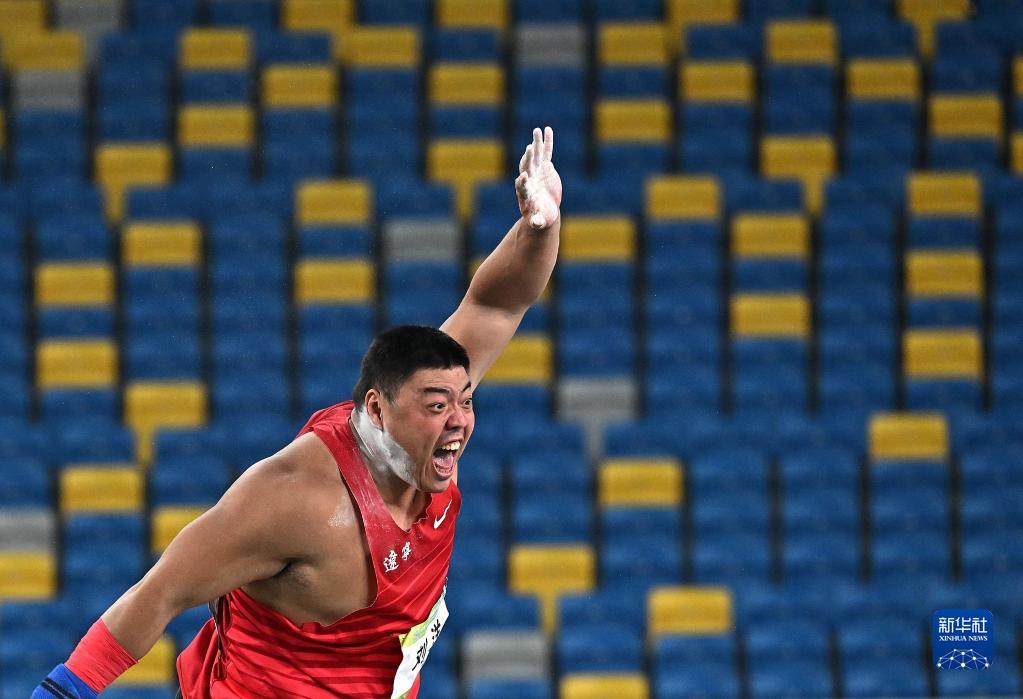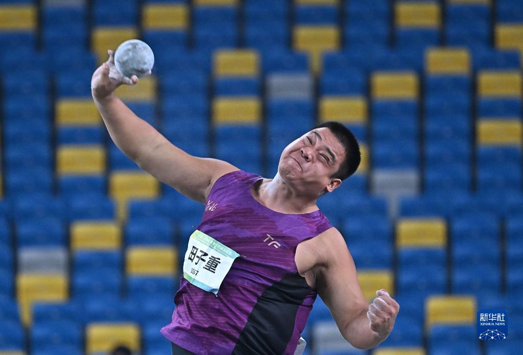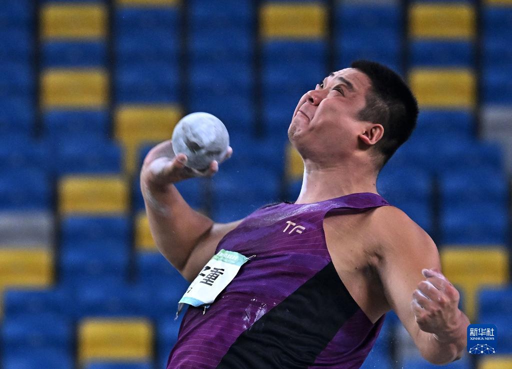 当日,在第十四届全运会田径项目男子铅球决赛在西安奥体中心举行。