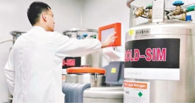 武汉波睿达生物科技有限公司,技术人员正在查看液氮罐内保存的细胞。长江日报记者刘睿彻 摄