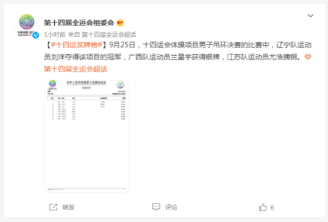 第十四届全运会组委会微博截图