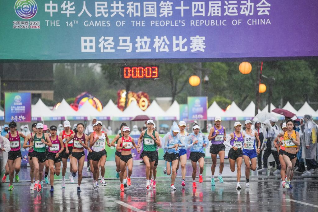 当日,第十四届全运会田径项目女子马拉松决赛在陕西省西安市举行。