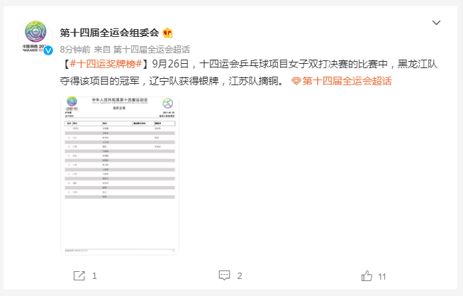 第十四届全运会组委会微博截图