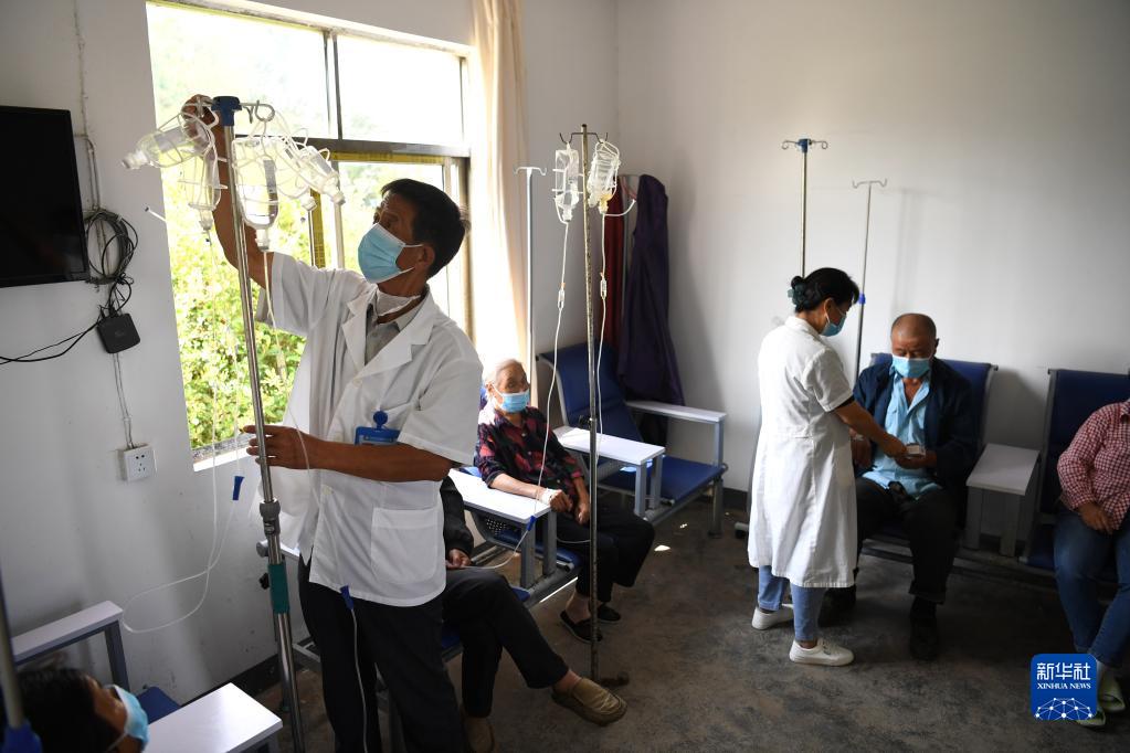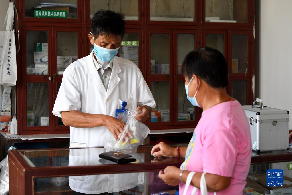 9月24日,汤根发在浙溪村卫生室为村民拿药。新华社记者 刘军喜 摄