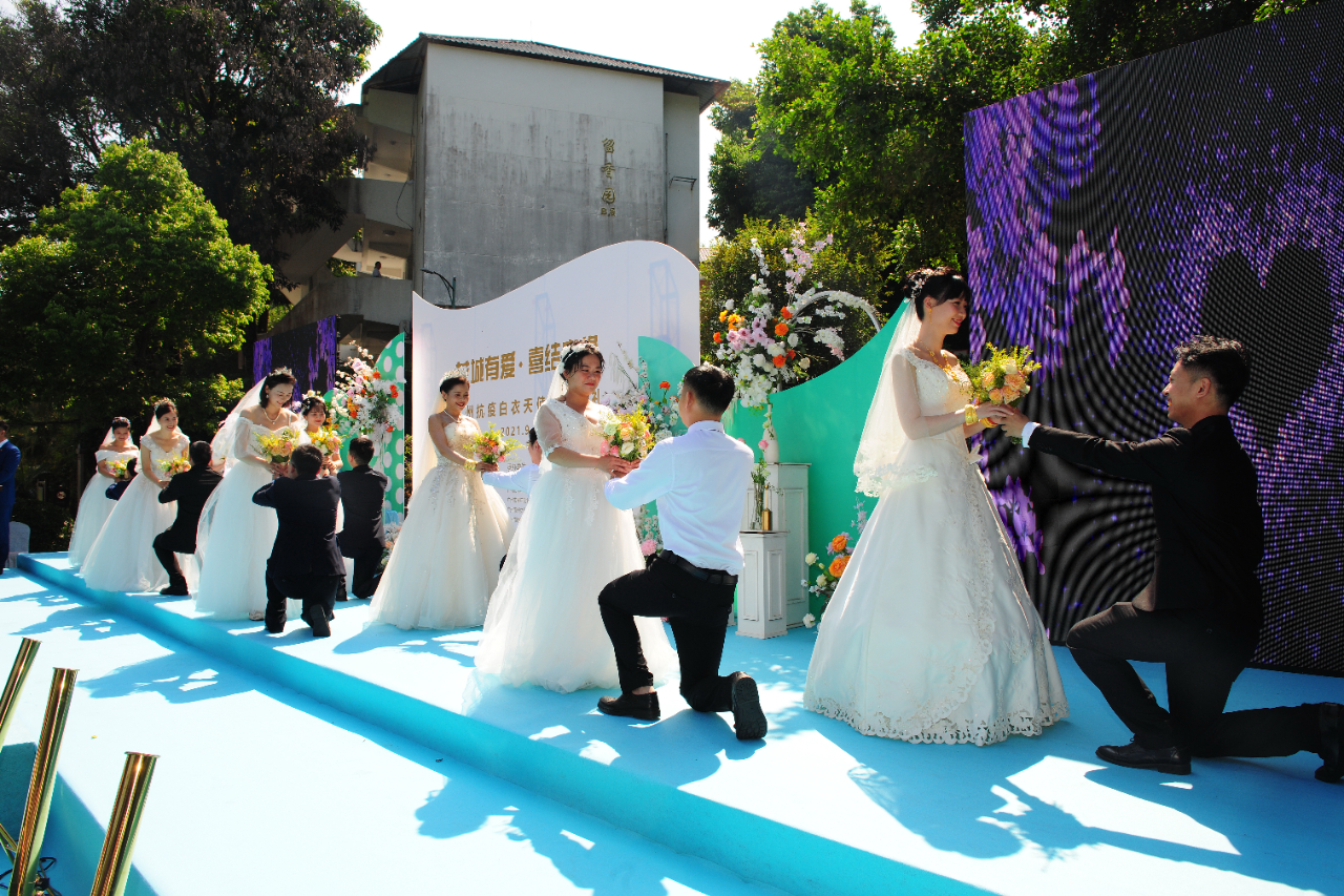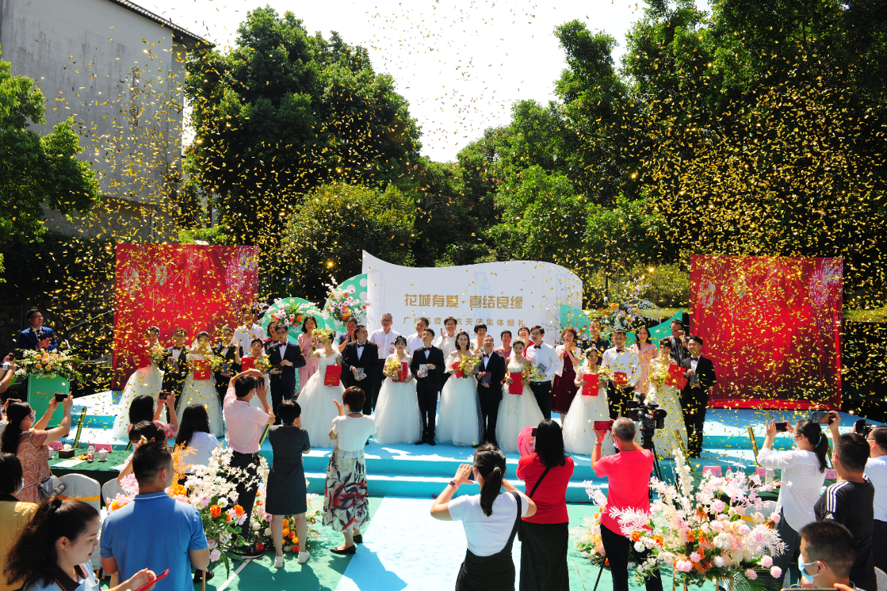 昨日着“战袍”,今朝披嫁衣。9月26日,由广州市总工会、团市委、市妇联、市卫健委联合举办的“花城有爱·喜结良缘”广州市抗疫一线医务人员集体婚礼在广州市第二工人疗养院举行,广州市人大常委会副主任、市总工会主席唐航浩等100余名领导和嘉宾共同见证9对新人的浪漫爱情,并给予他们最美好的祝福。广州市政府副市长黎明还为各位新人准备了签名贺卡。