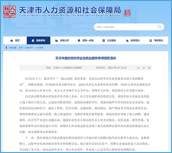 此次活动聚焦天津市滨海新区重点用工企业,从大学生求职者的角度出发,采取年轻人喜闻乐见的线上线下相结合的方式,走进海河教育园区,直接面向求职学生。现场对接环节共有80余家企业参加,提供就业岗位2000余个,涵盖了教育、医药生物、金融保险、餐饮酒店、地产物流等不同业态类型企业,利用津南就业云超市系统,线上投递简历,为求职者提供便利服务。现场还同步开展了线上招聘,通过微赞、抖音等平台进行直播活动,邀请企业负责人和高校负责人对企业情况、岗位需求、薪资待遇、发展前景和毕业生情况进行介绍,津南区人社局就支持企业用工相关政策和高校毕业生就业政策进行深入讲解,助力求职者高质量就业。