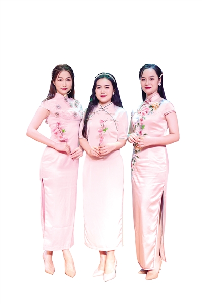省文联参赛队伍共有13人,分为20岁组、30岁组、40岁组和50岁组,每组三四人。旗袍和道具的挑选也配合诗中所言,如“二十岁的女人似桃花,像春天”,那么20岁组的旗袍则是以桃红色为基调,参赛者亦手持桃花枝。