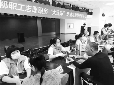 “本场活动,我们特别面向新就业形态劳动者,针对通州城区快递员、送餐外卖员、保安员、保洁员等群体需求,开展了志愿服务。”首都职工志愿服务运行中心相关负责人介绍说,运行中心集结了13支首都职工志愿服务队,走进通州临河里街道和通运街道,将理发、缝补、证件照拍摄、眼镜清洗、镜架矫正、首饰清洗、中医义诊、安全应急服务培训等多种服务,以志愿服务“大篷车”的形式,送到新就业形态劳动者及社区居民身边,当天累计服务300余人次。参加活动的职工和居民表示,身在城市副中心,能体验到首都各区职工志愿服务队送来的服务套餐,感觉既方便又暖心。