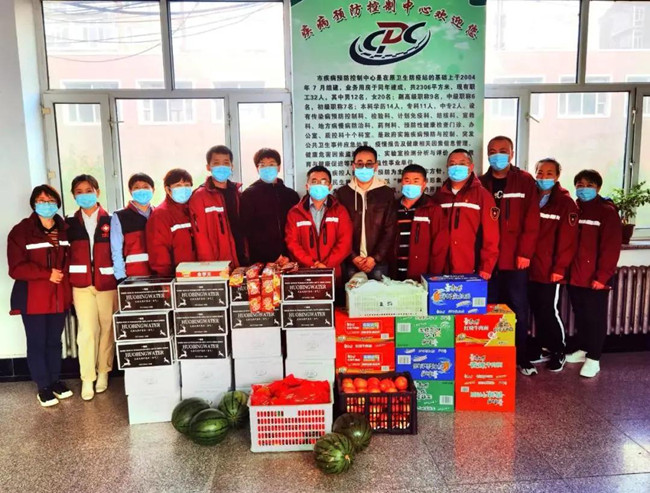 慰问组为市疾病预防控制中心工作人员送去矿泉水、方便面、水果等慰问品,与他们亲切交谈,向他们表示敬意和感谢,叮嘱他们确保个人健康安全。同时,希望疫情防控一线人员能够继续坚守初心、牢记使命、恪尽职守,不断发扬恪尽职守的职业精神和无私奉献的优秀品质,为五大连池市疫情防控贡献职工力量。