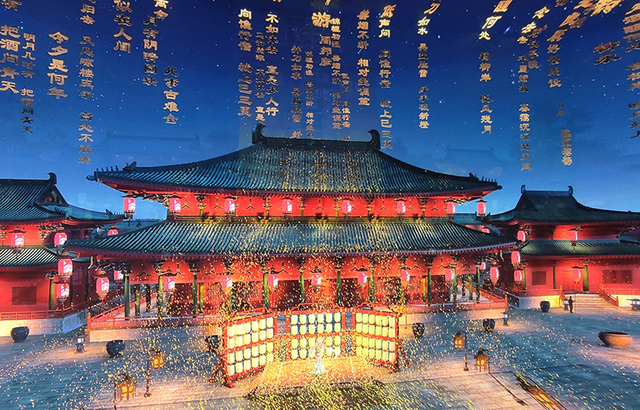 大梁门城楼内的全沉浸式《微梦大梁门》裸眼3D演出,通过六面8K高清LED屏组合形成全沉浸虚拟环境,360度的空间包裹,为游客带来强烈震撼的视觉冲击力。