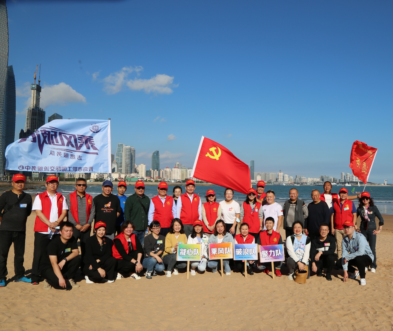 为助力青岛市文明典范城市创建工作,10月13日下午,青岛市总工会职工国际交流服务中心党总支联合山东省海员工会、青岛市总工会相关部门开展“乘风破浪”志愿者服务队服务季誓师仪式暨中心职工沙滩趣味运动会”主题党日活动。
