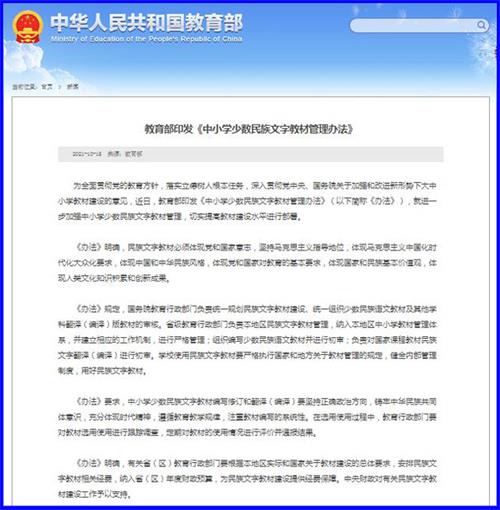 中工网讯 据教育部官网消息,为全面贯彻党的教育方针,落实立德树人根本任务,深入贯彻党中央、国务院关于加强和改进新形势下大中小学教材建设的意见,近日,教育部印发《中小学少数民族文字教材管理办法》(以下简称《办法》),就进一步加强中小学少数民族文字教材管理,切实提高教材建设水平进行部署。
