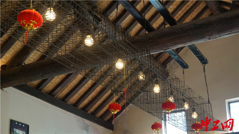 为最大化利用废弃物,张庄村负责村落改造的工作人员在做好绿色环保方面动起小脑筋,由旧鸡笼改造后的灯罩成了房间里一个美观的装饰品。
