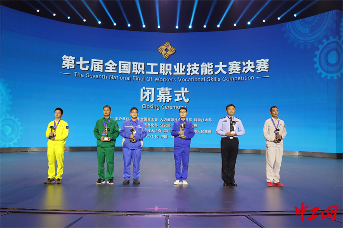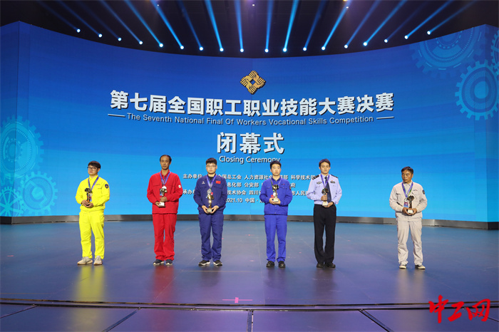 10月16日,第七届全国职工职业技能大赛决赛在成都闭幕,来自新疆维吾尔自治区代表队陈祥洪、江苏代表队李德印、四川代表队岳书豪、广东代表队刘锐杰、湖北代表队李杨、山东代表队贾正民分别获得钳工、焊工、数控机床装调维修工、工业机器人操作调整工、网络与信息安全管理员和砌筑工第三名。