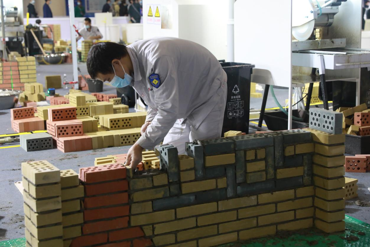 中国建筑五局海南分公司砌筑工技术指导唐利斌指着现场比赛的选手告诉记者:“选手们在现场需要砌筑‘2021’‘川’字和‘四川双子塔’模型,需要注意水平垂直度,灰缝尺寸,考验选手的熟练度,效率等。”