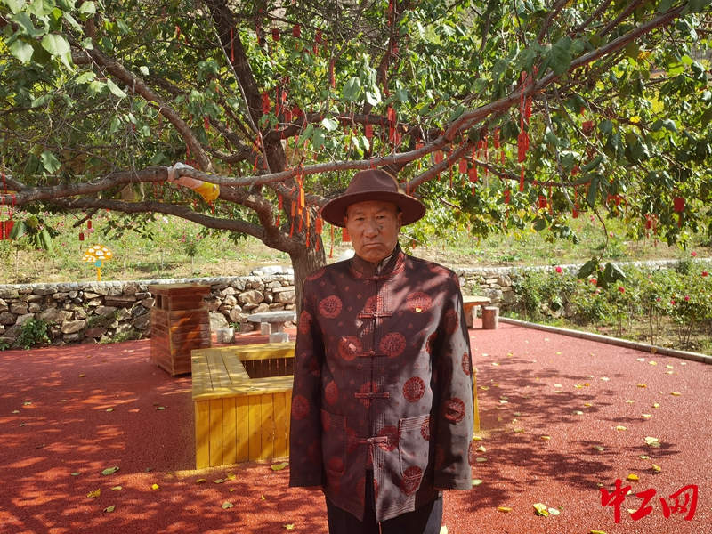马进才老人,身后是27年前他在禹王峡种下的第一颗杏树
