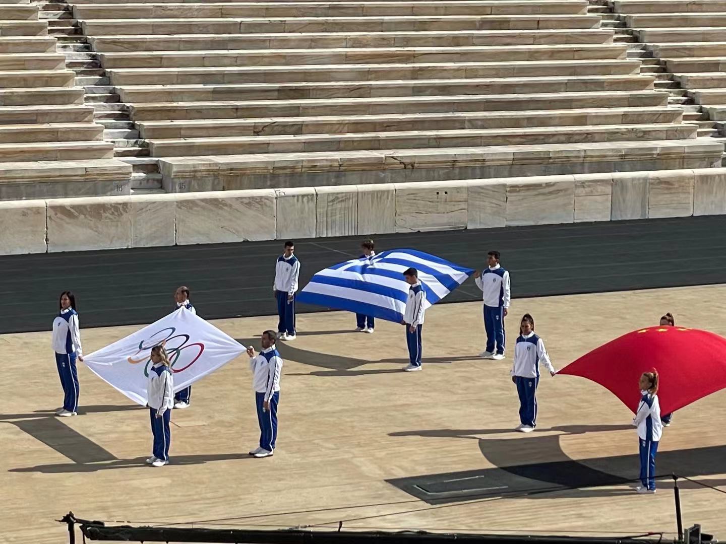 △北京冬奥会火种交接仪式在希腊雅典大理石体育场举行