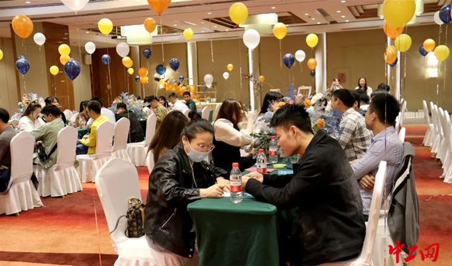 中工网讯(工人日报-中工网记者王晓颖 通讯员徐笑月 程仁虎)10月16日,由江西省景德镇市昌江区总工会、共青团昌江区委主办的“学党史·办实事”昌江区未婚青年职工联谊活动举行。现场70余名青年男女通过互动游戏、自我介绍、替换交流等方式,充分展示自我,期待邂逅良缘。景德镇市总工会女工委主任于萍萍出席活动并致辞。