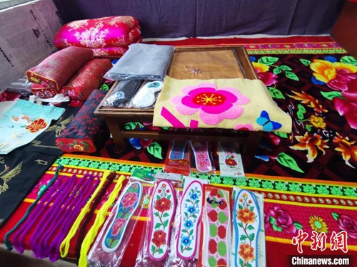 2021年10月,在甘肃临夏州东乡县布楞沟村民俗体验区拍摄的东乡刺绣。 吉翔 摄