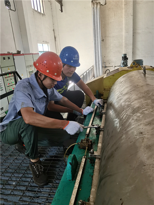 入夏以来,酷暑逼人,翻抛机出现紧急故障需要抢修,李哲、顾浩接到通知,迅速赶往现场查看。他们仔细回忆师傅教授的经验,仔检查每一颗螺丝钉,排查故障原因,因作业空间有限,工作服很快被汗水浸湿。