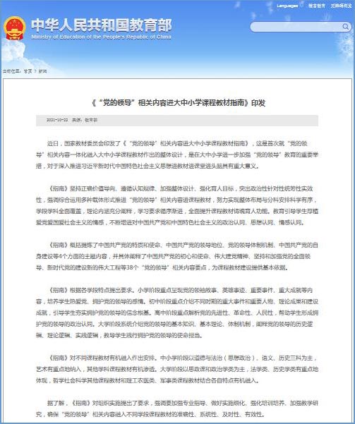 《指南》坚持正确价值导向、遵循认知规律、加强整体设计、强化育人目标,突出政治性针对性统筹性实效性,强调综合运用多种载体形式推进“党的领导”相关内容进课程教材,努力实现整体布局与分科安排科学有序,学段学科全面覆盖,理论内涵充分阐释,学习要求循序渐进,全面提升课程教材铸魂育人功能。教育引导学生厚植爱党爱国爱社会主义的情感,不断增进对中国共产党和中国特色社会主义的政治认同、思想认同、情感认同。