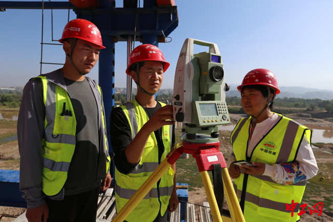 8月24日上午,当长50米、重达235吨的波纹钢腹板钢混组合箱梁,分毫不差稳稳地架设在安临一级公路洮河大桥上时,在现场见证甘肃省此类最长桥梁架设的设计院、业主、总监办等相关领导,对建设者精湛的技艺报以热烈的掌声。而在桥上操作测量仪器指挥精准落梁的就是中铁二十一局三公司安临项目部测量班班长冯亚妹。