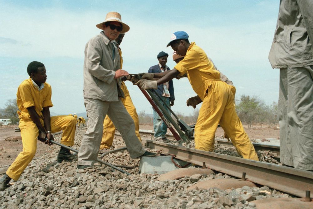 1985年12月,沈阳铁路局派出的铁路工作组援助博茨瓦纳更新位于该国首都哈博罗内附近一段120公里长的铁路线。新华社记者徐长银摄