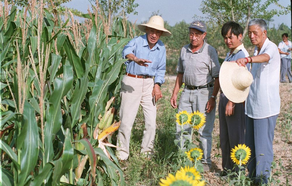 1997年10月,联合国开发计划署援华技术顾问考察援建的中国陕西省渭南市合阳县甘井旱地农业开发项目示范区。新华社记者范德元摄