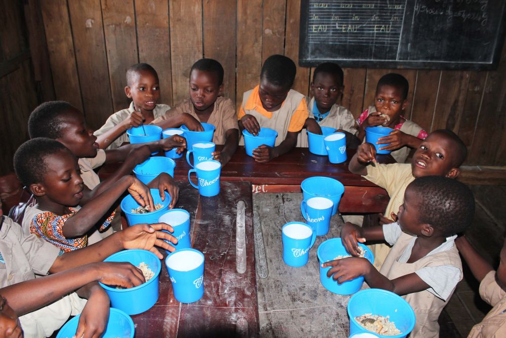 2019年10月17日,在贝宁经济首都科托努郊区的托优优美小学,学生们在午餐时享用中国援助的米饭。从2018年开始参与中国、贝宁和世界粮食计划署联合实施的贝宁中小学生“全国学校食堂计划”后,该校的学生们每天都能吃上一顿中国援助的大米饭。 新华社发(塞拉芬摄)