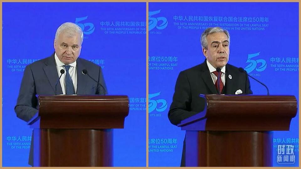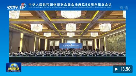 今年的同一天,中华人民共和国恢复联合国合法席位50周年纪念会议在北京隆重举行。
