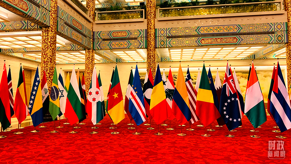 △纪念会议现场,联合国各会员国国旗组成的旗阵。(总台央视记者 范一鸣 拍摄)