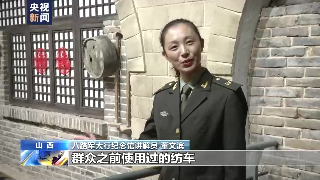 八路军太行纪念馆讲解员 董文滨:我们看到这个是群众之前使用过的纺车,当年无论是抗日干部还是普通士兵(都是)一手拿枪一手拿镐,一面战斗一面生产,开展了轰轰烈烈的大生产运动。通过纺线织布,开荒种地等形式克服了重重困难,不仅减轻了人民群众的负担,也增进了军民鱼水情。