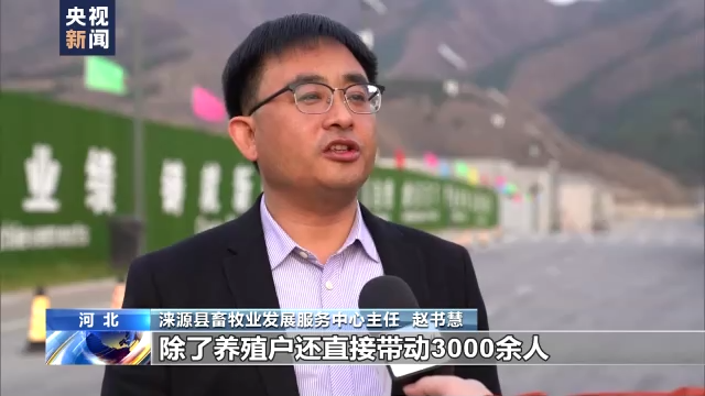 河北省涞源县畜牧业发展服务中心主任 赵书慧:除了养殖户,还直接带动3000余人在家门口实现就业,户均年增收3万元以上,通过种植饲料原材料,带动11000余人增收致富。