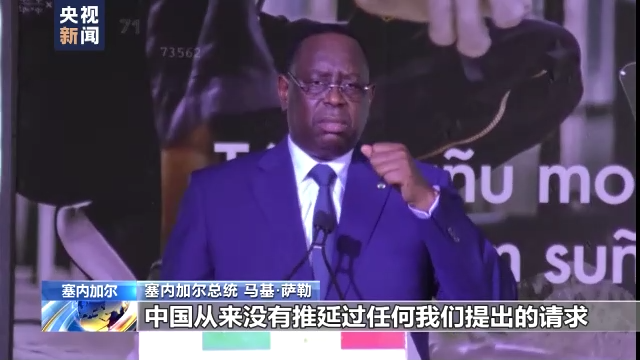 塞内加尔总统 马基·萨勒:中国从来没有推延过任何我们提出的请求,所有我们向中国提出的请求以及相关项目,都得到了中国的支持以及资助。