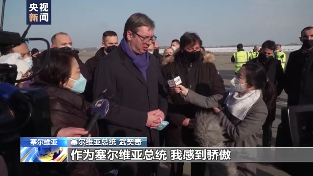 塞尔维亚总统 武契奇:我们是欧洲第一个获得大量疫苗的国家,作为塞尔维亚总统,我感到骄傲。我们获得了可以为50万人口接种的100万剂疫苗,这在我们的人口总数中不是个小数字,将挽救许多人的生命。