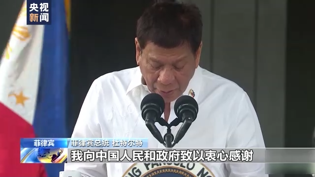 菲律宾总统 杜特尔特:我向中国人民和政府致以衷心的感谢,(中国的疫苗援助)彰显了两国间的友谊和团结,这也是菲中关系的特色。