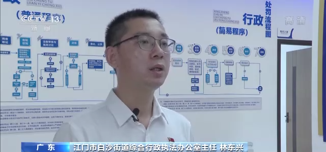 广东省江门市白沙街道综合行政执法办公室主任 林东兴:有效解决以前执法办案实时监管难,办案随意性大问题,行政执法的全过程网上办理、执法行为的在线智能化监督,让老百姓真正感受到法治不需要找熟人。