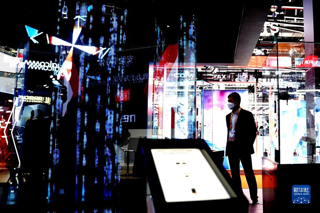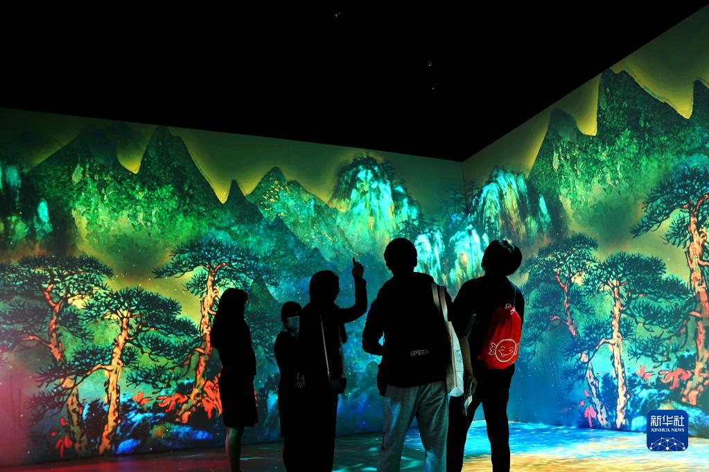 11月5日,参观者在第四届进博会技术装备展区欣赏沉浸式数字艺术光影秀。