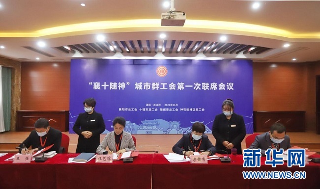 “襄十随神”城市群工会协同发展推进活动5日在湖北襄阳举行。活动现场,襄阳市、十堰市、随州市、神农架林区四地的工会负责人共同签订《“襄十随神”城市群工会协同发展合作框架协议》,建立联席会议机制、信息共享机制、创新共推机制,以期实现资源共享、优势互补。